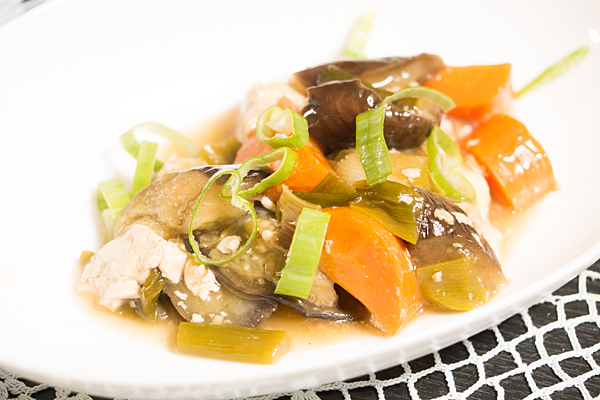 具材はナス、ニンジン、豆腐、長ネギ。