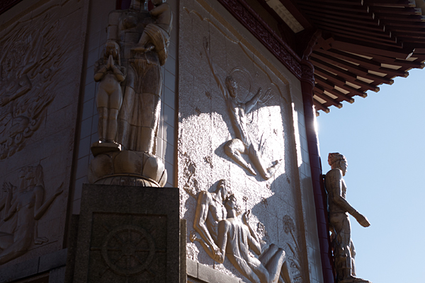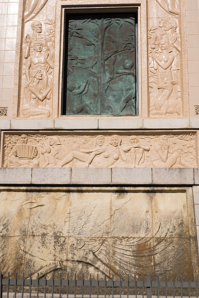 平和堂は戦後復興事業の一環として昭和39年に建てられた新しいものではあるのだけど、壁面の絵はなかなか示唆に富んでいる。