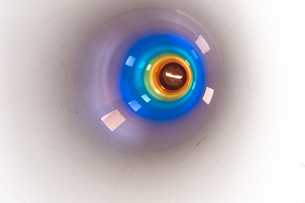 春分と秋分の正午に真っ直ぐ光が入り込むとはっきりした虹色になるらしいのだけど、普段でも日が差していると虹色っぽく見える。