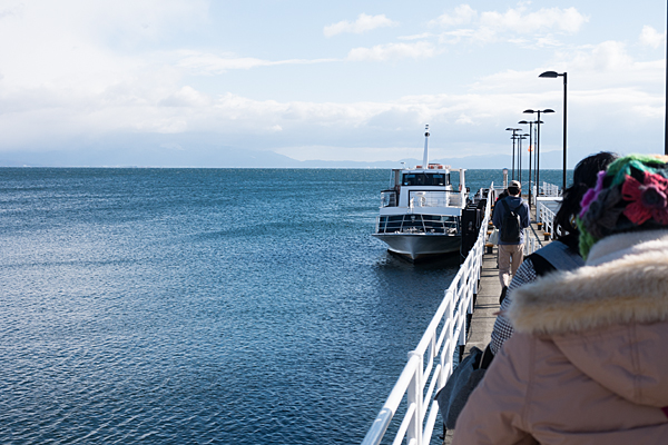 というのも、船酔いの心配があるメンバーがいて、少しでも乗船時間が短い方がいいということで西岸の今津港に回ったというわけだ。