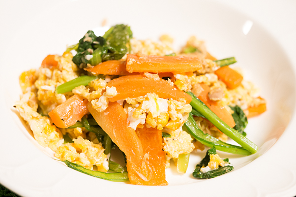 別に作った炒り卵を最後に混ぜ合わせる。