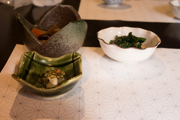 まずはおばんざい3品が出てきて、その後メインの料理が出てくるまで10分以上かかったと思う。