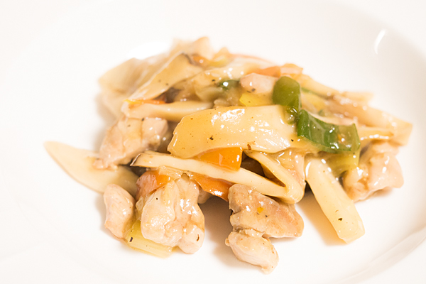 具材は鶏肉、エリンギ、シイタケ、長ネギ、ニンジン。