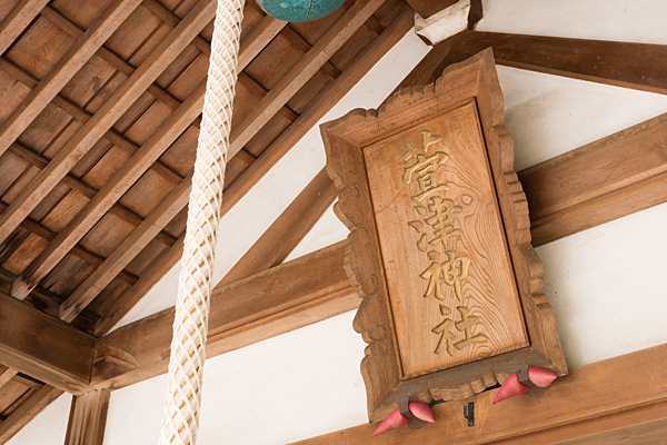 神社のあたりはかつて海辺だったというから、船着き場か湊があって、そのあたりに萱が生えていたことから地名になったとも考えられる。