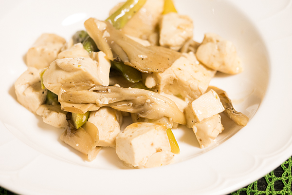 「豆腐とマイタケ炒め」