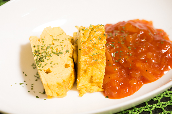 「だし巻き卵とケチャップソース」